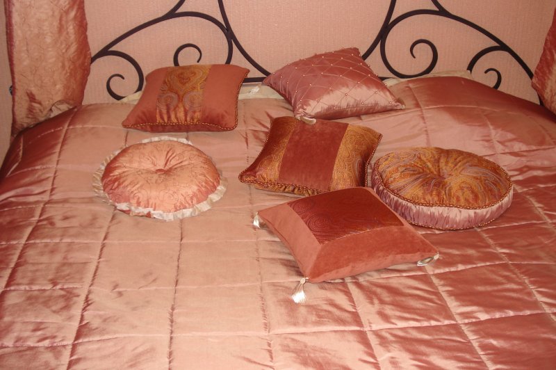 Самая неприхотливая ткань для подушек это портьерная, она бывает разных видов, бывают очень интересные ткани и с узорами и рельефные, мелкие нашивки со временем теряют свой товарный вид, ведь такие подушки всегда в ходу, а чехлы из портьерной ткани износостойкие, вшил замочек для удобства или липучку и все=) |