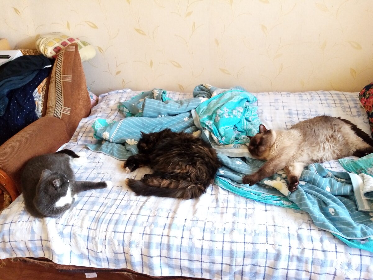 Человеки ваша очередь спать закончилась, вам пора на работу, чтобы мы ни в чём не нуждались, вкусно кушали и на мягком спапи