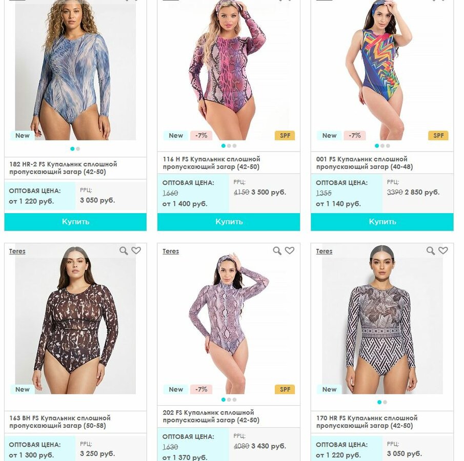 182 HR-1 FS Купальник сплошной пропускающий загар (размер L 46-48), цена за 1 штуку - 1340 руб.