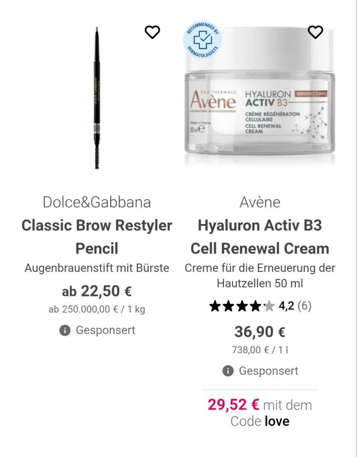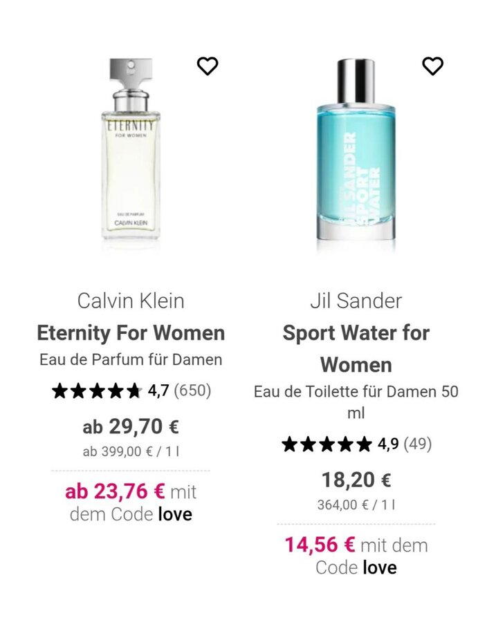 Скидки на определенные товары с кодом love