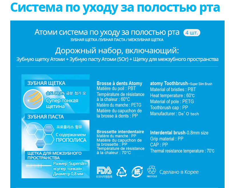 🔥Набор зубных щеток Атоми обеспечит здоровые и чистые зубы всей семье.