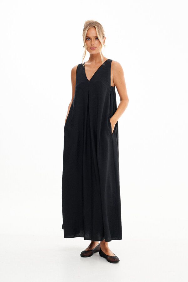 Платье свободного силуэта, длиной макси, из плательно