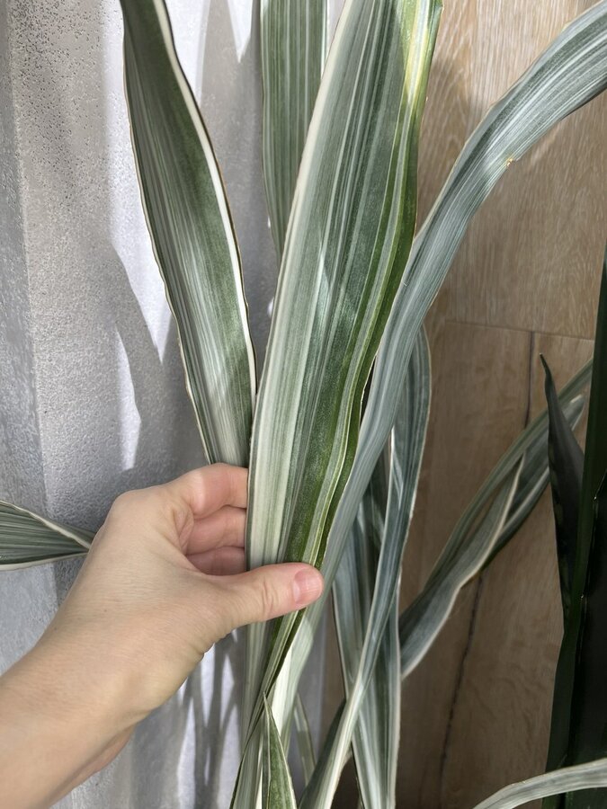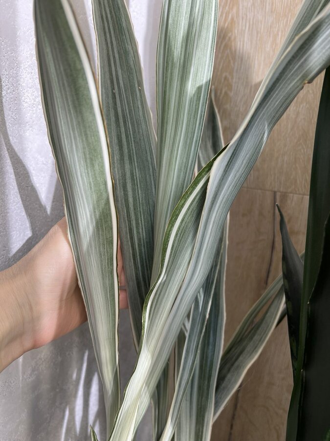 Здравствуйте, хочу спросить про сорт Sansevieria trifasciata Bantels's sensation. У меня она уже давно растет, лет 8, большой куст, разрастается активно, но на 2й год лист становится слишком длинный и сгибается, я сколько не смотрела фотографий с этим сортом везде листья как солдатики, а мне приходиться обматывать проволокой, что некрасиво смотрится. Что я делаю не так, почему так происходит, и у всех у кого есть этот сорт листья больше метра?