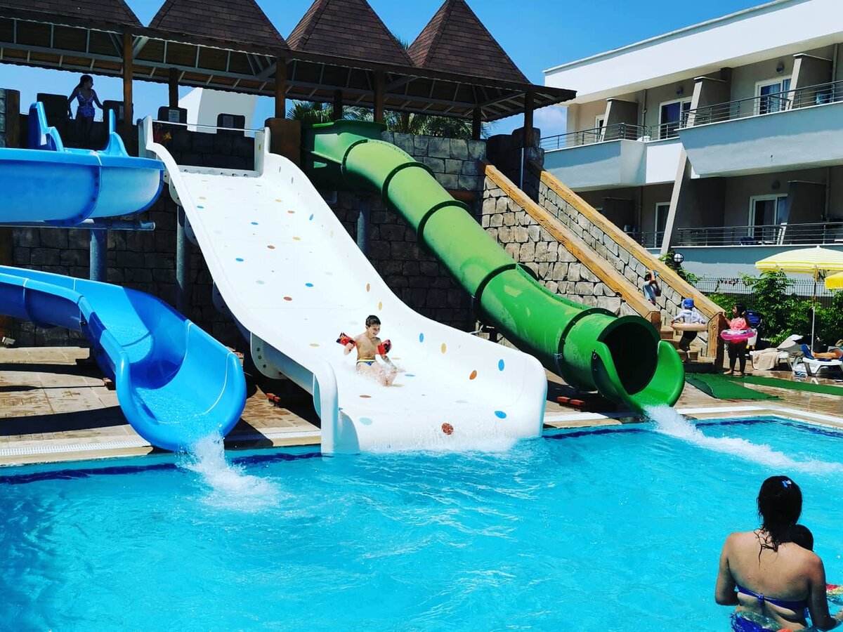Наш корпус далековато, но есть один существенный плюс - контингент в основном взрослые пары или родители с малыми детьми, горки почти свободные, в отличие от пляжных общих. Но катаемся мы там и там.