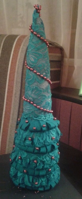 Елка красивая. Звездочка на макушку просится и крупные бусины, звездочки или снежинки на тело елки