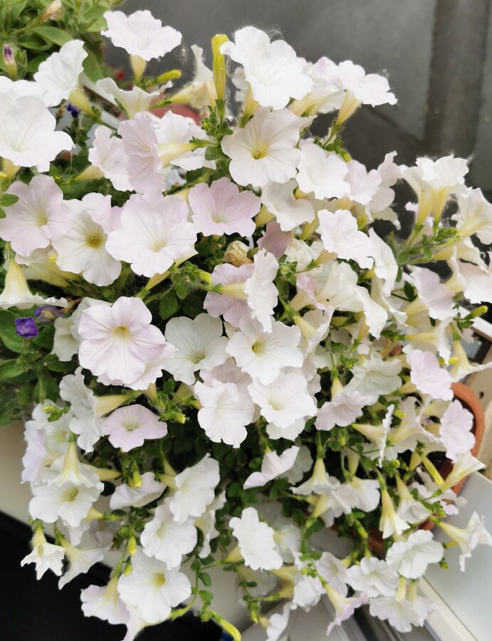 А что до уличных цветов... Я в этом году очень поздно цветы посеяла, но вот вам один горшок за окном, например: