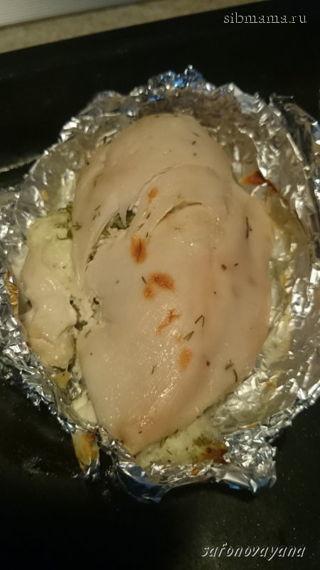 Далее чуть подрумяниваем на режиме "гриль", раскрыв фольгу.