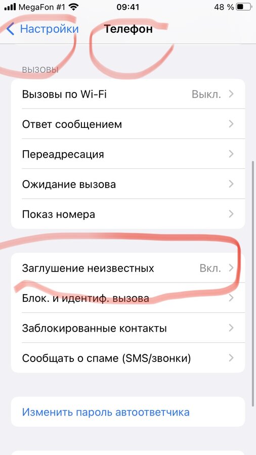 Настройки- телефон - заглушение неизвестных