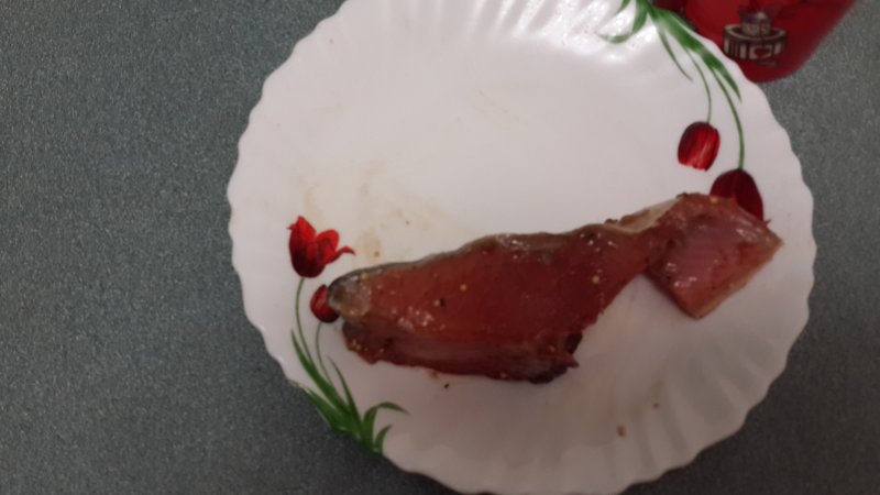 Пришлось посолить потрошеную и разрезанную. Поделилась с пёсиком , он очень любит селедочные головы и потрошки .