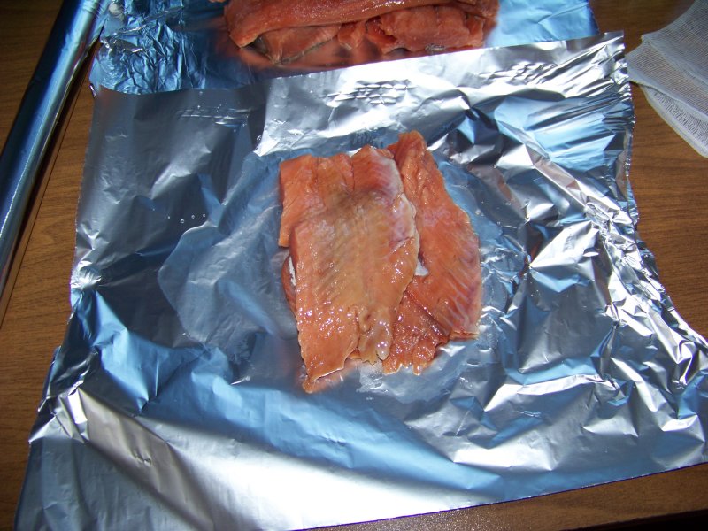Сразу разрезала - спинку отдельно, брюшки отдельно (брюшки покрошу и пойдут в фарш для эклеров). Получилась кета вкусненькая, малосольная, жирненькая такая.