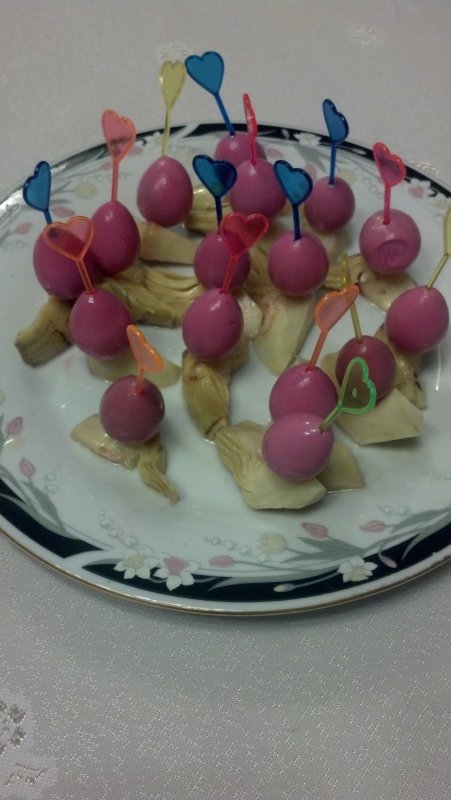Артишоки и маринованные перепелиные яйца.