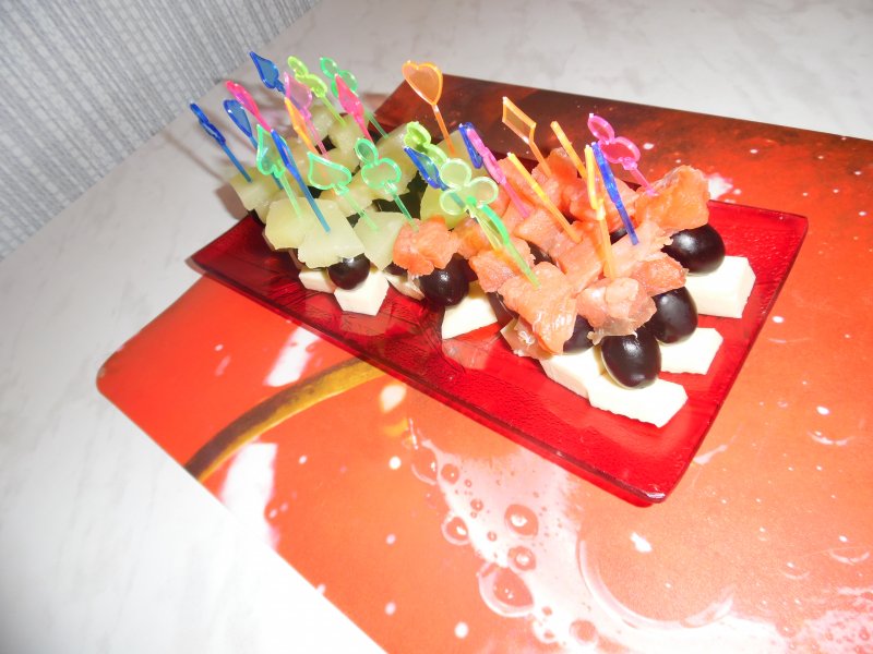 2. Слабосоленая рыбка+маслины+сыр