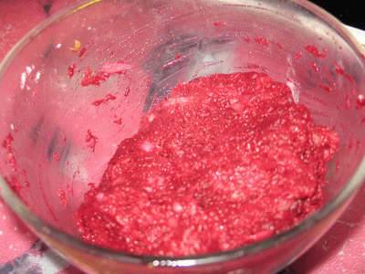 Теплые свеклу (очистить) и картошку натереть на терке: картошку на крупной, свеклу на мелкой.