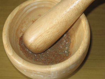 Специи по вкусу, у меня была смесь куплена на таджикском рынке россыпью-самосборная для шашлыка.