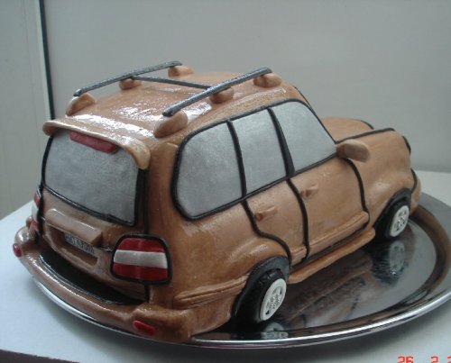 Тойота Лэнд Крузер, примерно 4,5кг, шоколадный и апельсиновый бисквит, крем черносливный с орехами, покрытие мастика маршмелоу.