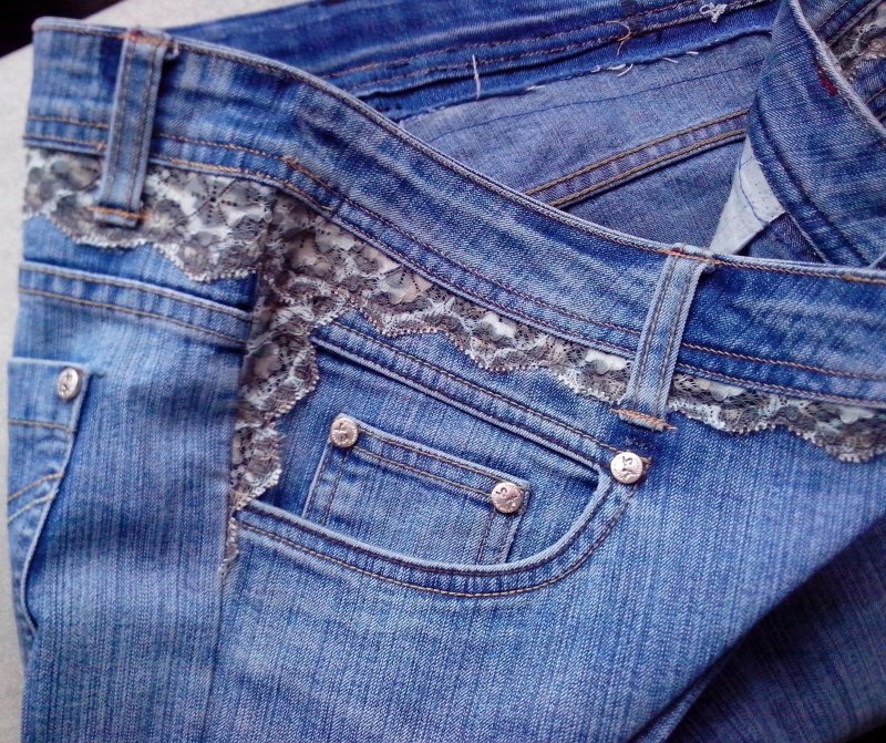 Проблема натолкнула на интересную идею (вечно мне джинсы по пятой точке хороши, а в талии маловаты): расставила по поясу и боковому шву, а закрыла это безобразие эластичным кружевом. Просто ношу и не нарадуюсь :in_love: .