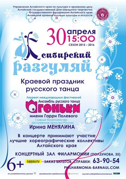 В этом году конкурс-фестиваль «Солнечный бал» открывает для вас свои двери 7—8 мая 2016 года на большой сцене Краевого театра драмы им. В. М. Шукшина!!!