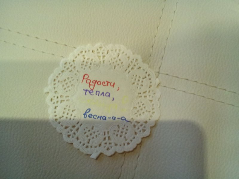 Я твой подарочек открыла только 30 апреля, тянула до последнего, чтоб перед самим праздником порадоваться. Мне очень очень понравился твой подарочек!!!!!