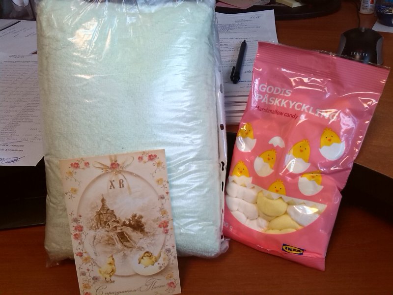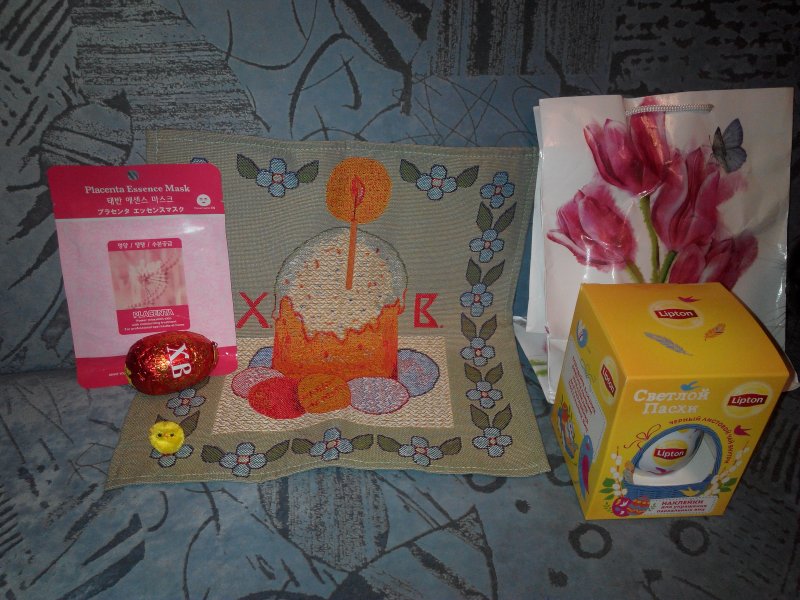 И я с благодарностью! Мой кролик прислал фетровую корзинку для яиц, очень интересные штучки для декора яиц и салфетки (кстати заглядывалась на них в магазине недавно ) и конфетки, много конфет Все очень понравилось Большое спасибо моему тайному дарителю!