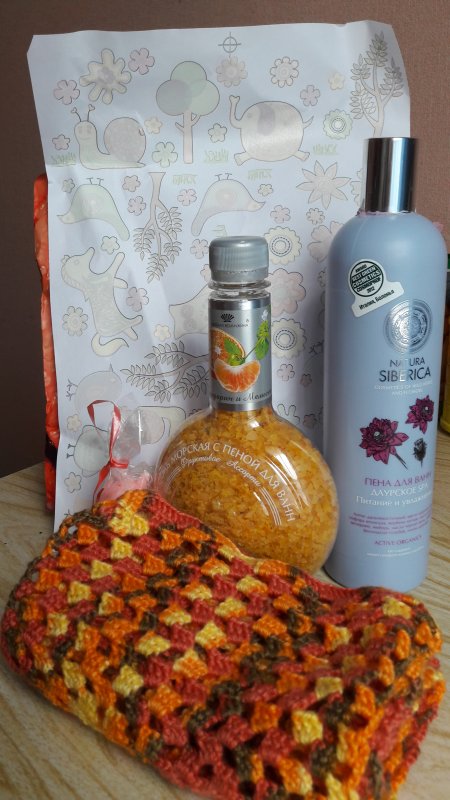 Думала о подарке и приходили мысли о геле для душа ,а тут еще такие вкусные вкусные . А полотенчико, тоже были мысли новенькое купить . И вкусняшка от кролика и теплые слова