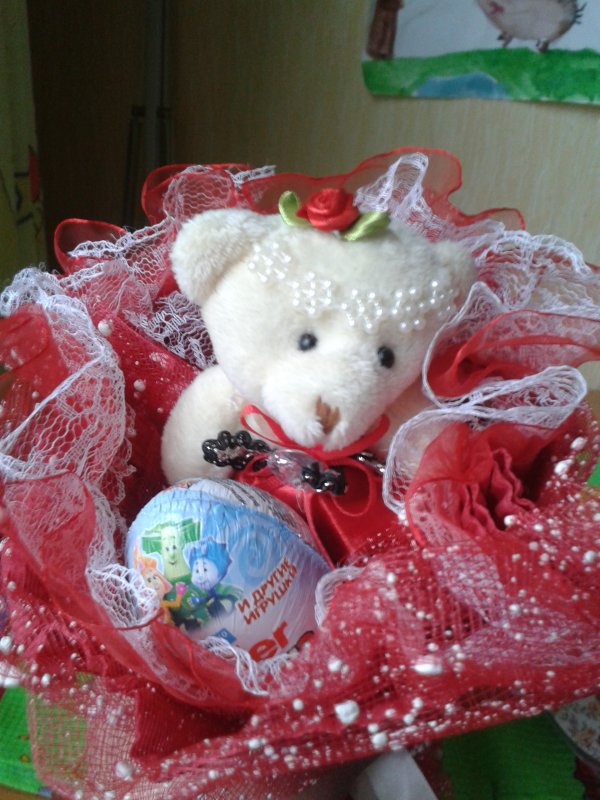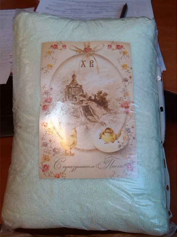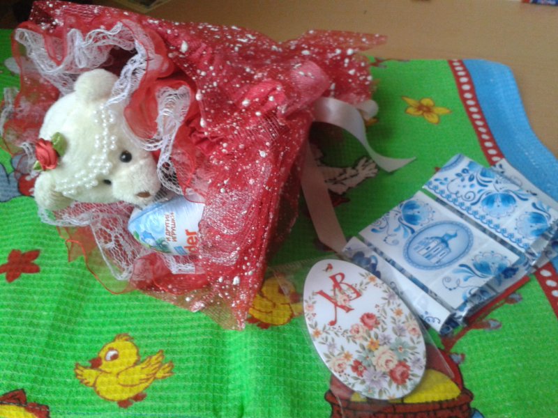 Получила я свой подарочек и бегом с ним на работу. В руках держу, понимаю, что что-то мягкое.... Прибежала, распаковываю, а там такая красота и открыточка вложена