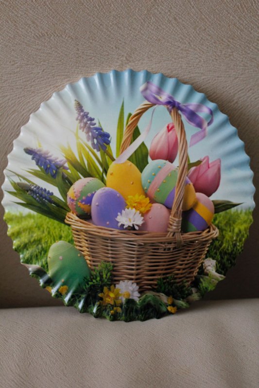 Яички обтянула пленочкой, очень красиво получилось, а на подносик поместиля и кулич и пасха