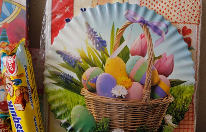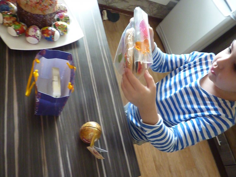 Шоколадные яйца пасхи не дождались и были детьми съедены сразу после раскрытия подарка...