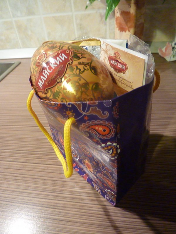 Иииии..... Супер красивая, оригинальная и очень крутая коробочка. Тоже ручная работа, да? А в коробочке пасхальные яички-конфеточки.