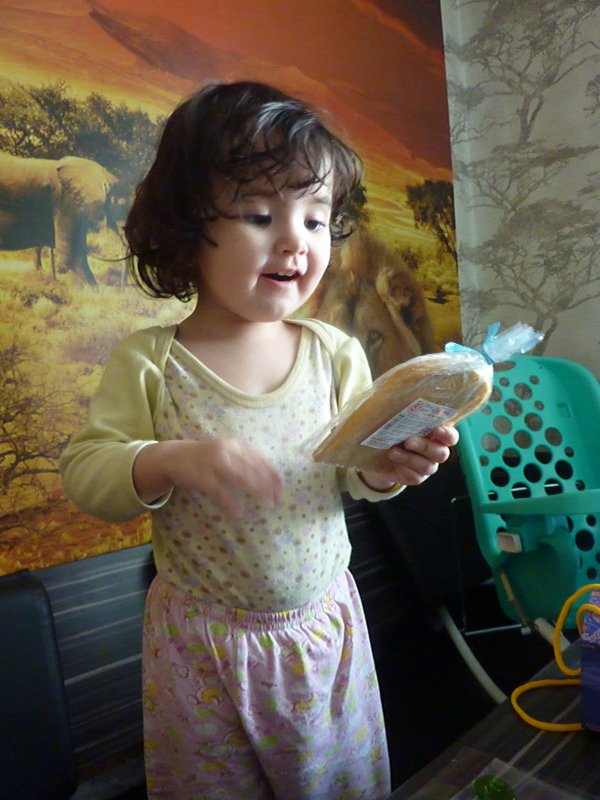 Далее разворачивал скатерть-самобранку (упаковку с развивашками - яичками, цветочками-отдал сестренке. мы после завтрака играли с ними)