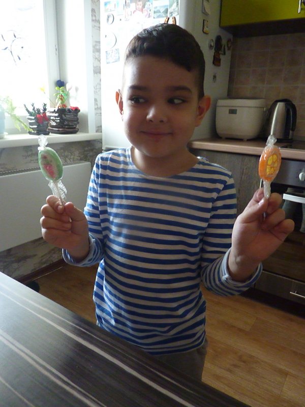 и обнаружил сладкие богатства - аппетитные леденцы и чудесный пряничек ручной работы.