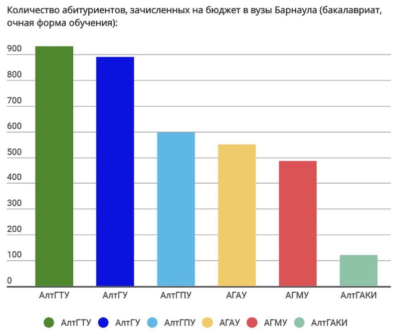 Какой из вузов Барнаула принял больше всех абитуриентов на бюджетные места