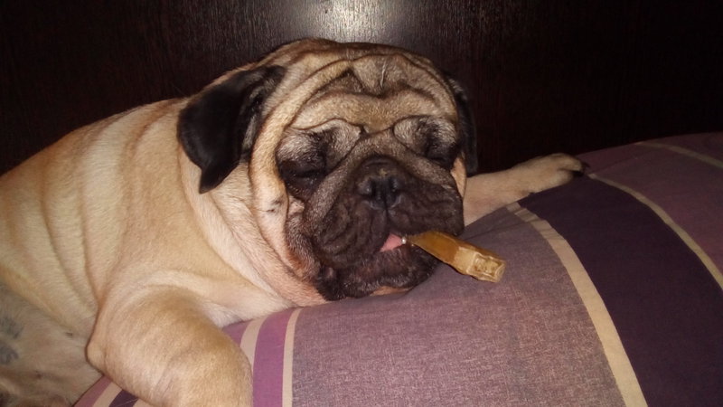 Дожили мы до возраста потери зубиков, у Вильки передние уже начали редеть. И, что самое неприятное, появился запах изо рта. Мы, конечно, любим косточки и покупаем специальные для чистки зубов