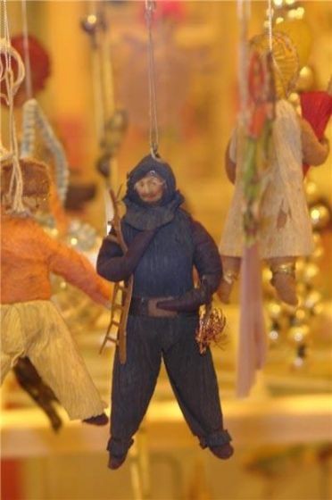 A потом была война. В маленьких артелях производство игрушек продолжилось. Главный материал – фольга и погоны. Из них мастерили корзинки и парусники. Появились проволочные украшения из отходов производства – пятиконечные красные звёзды с гербом внутри. Изготовлялись из кусочков ткани и ниток парашюты, пистолеты, собачки-санитары и, конечно, танки, пушки, солдатики.