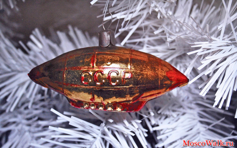 С тех пор Новый год, елки и выпуск елочных игрушек вернулись в жизнь советских граждан. Игрушки тех лет выглядят соответственно историческим реалиям: “парашютисты” из ваты, стеклянные дирижабли с надписью “СССР”.