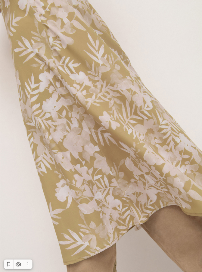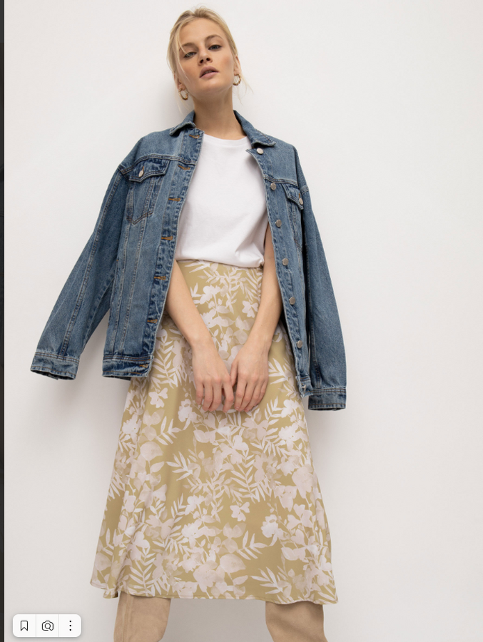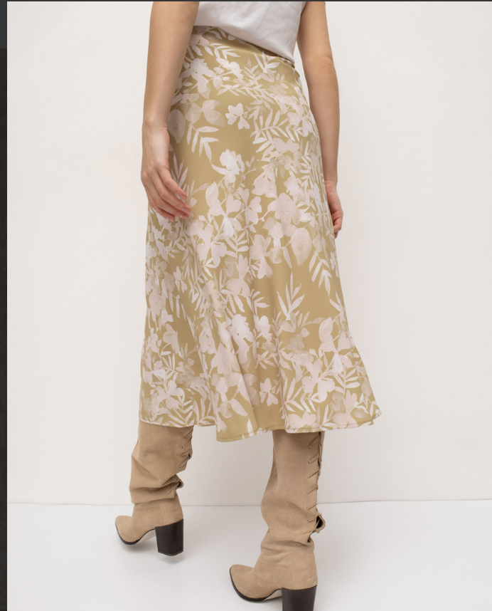 Юбка горчичного цвета в крупный цветочный принт. Модель свободного А-силуэта с правильно посадкой на талии застёгивается на потайную молнию в боковом шве. Изделие выполнено на приятной к телу подкладке из 100% вискозы.