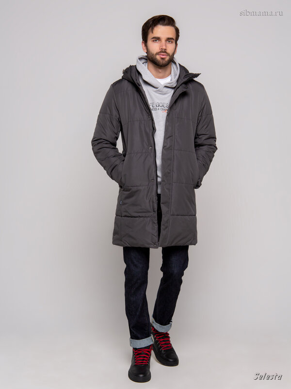 Удлиненная модель полуприлегающего силуэта. Утеплитель к верху (100 г/кв.м) и к подкладке (200 г/кв.м).
