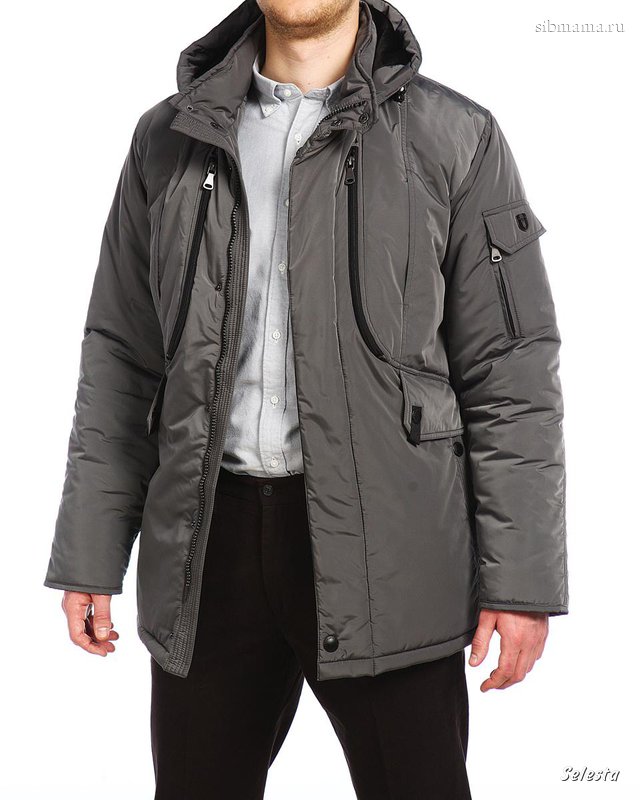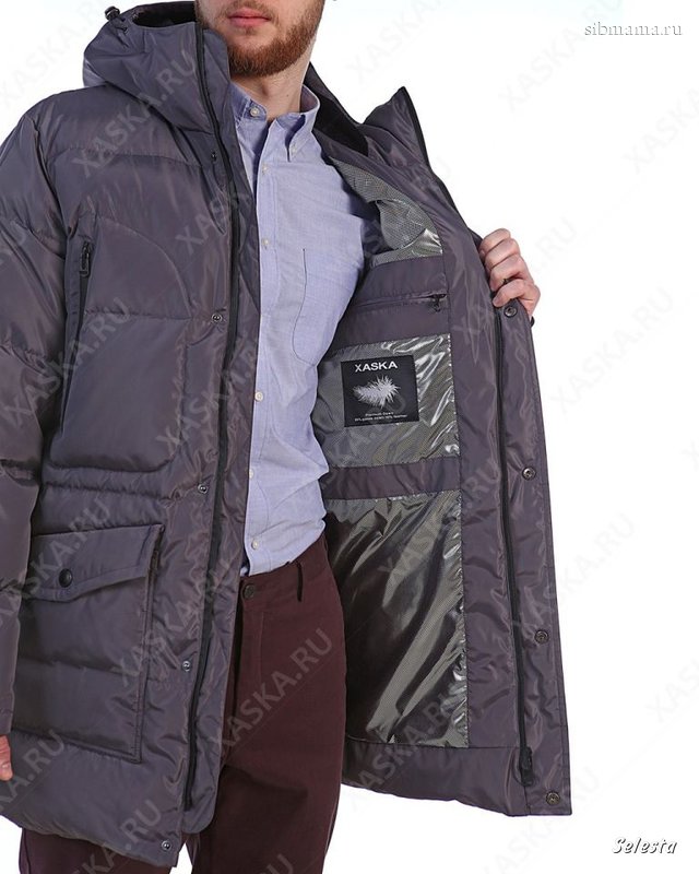 два нижних боковых кармана на молниях, два внутренних кармана (один из которых на молнии), капюшон с регулируемой кулисой,