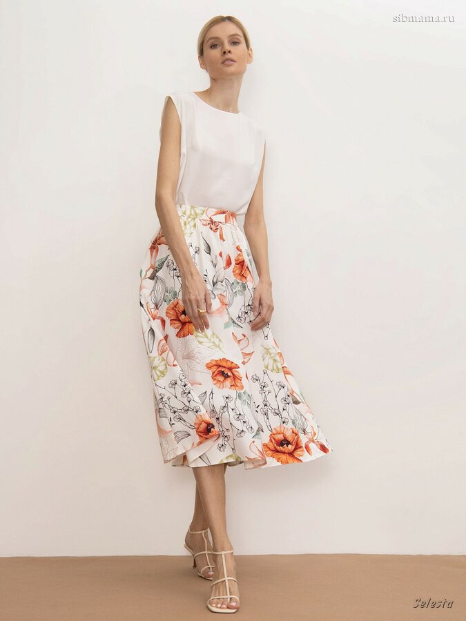 Юбка с принтом отлично сочетается с базовым однотонным верхом. Универсальный фасон можно носить как с удобной обувью на плоской подошве, так и с босоножками на устойчивом каблуке.