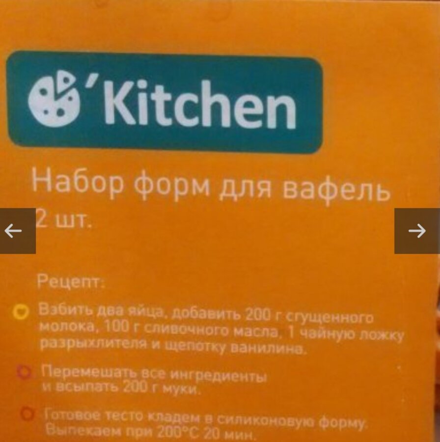 Несколько лет назад был ФМ по вафлям, мы тут всем форумом покупали формочки под вафли в ФП. На упаковке был этот рецепт
