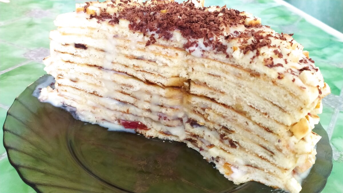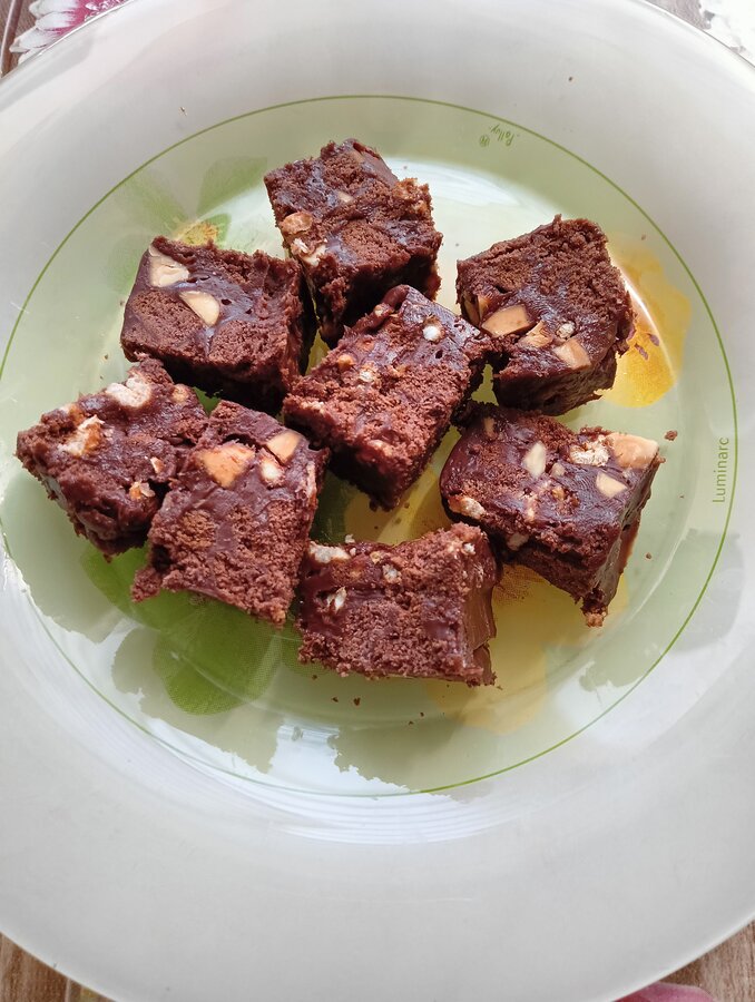 Так как я вчера делала полпорции фаджа, у меня осталась сгущёнка и печенье. Дети попросили повторить, только без "противного" изюма и сухофруктов.