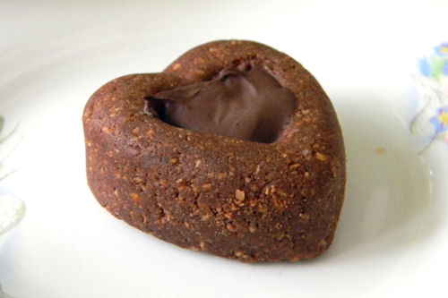 Делала в виде сердечек, в середину положила по 0,5 ч.л. растопленного горького шоколада, который потом благополучно замерз.