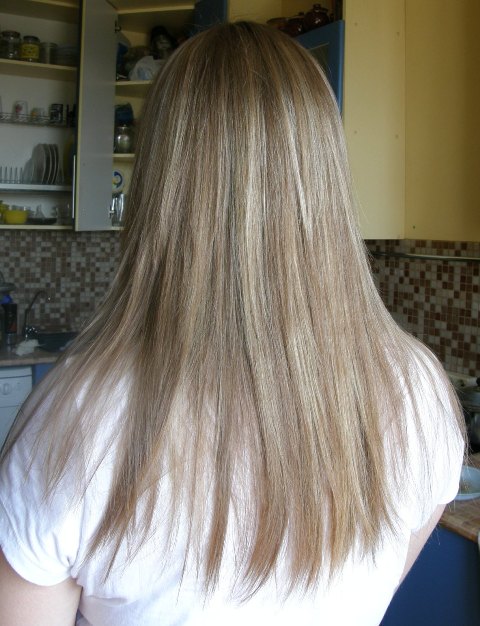 Вот 2 вида калифорнии. 1-пряди и растяжка от русого к блонду (эффект "длительного нахождения на солнце"),2-выгоревшие пряди в движении.Фото к сожалению не передают основной цвет,дают рыжину. Заранее извиняюсь за антураж и мутное пятно на объективе,не заметила.