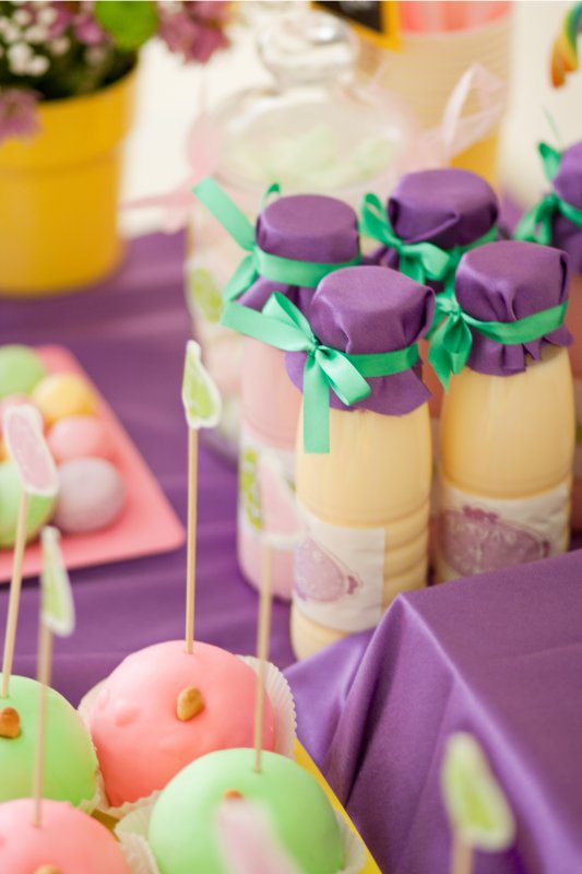 Магазина нет, оформление обычно ищется под идею, и тут все подойдет - стаканы какие-то особенные, бутылочки с лимонадом, трубочки. Всякие этикетки и ярлычки - в типографию или сами.
