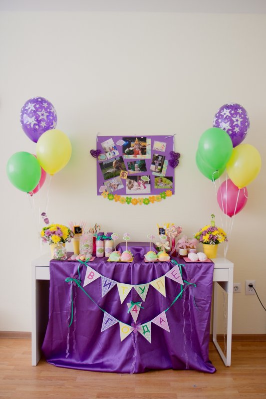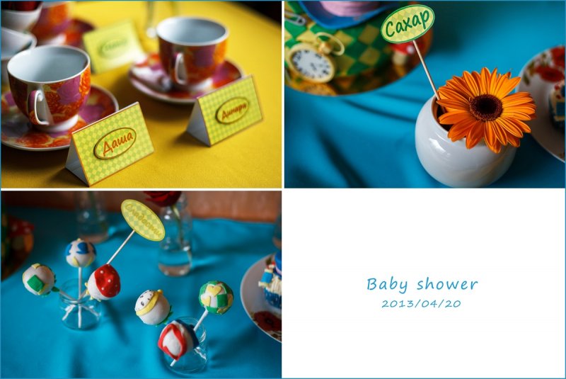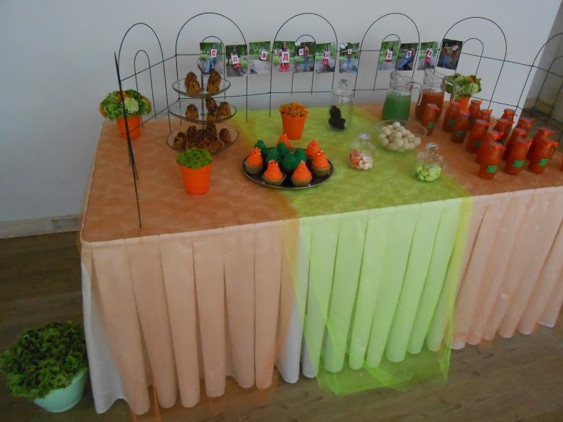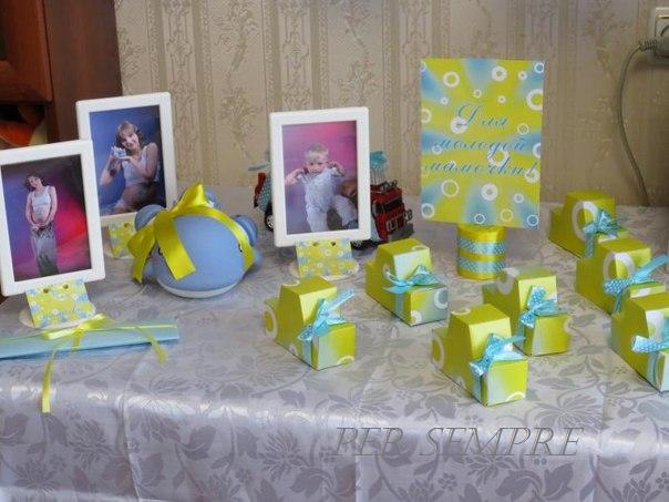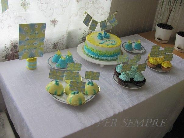 А это вот с половинки годика, сладостей вообще не было, потому что все гости были мамочки кормящие с диетой, арбуз, арбузное желе и морс. Оформляю не сама, а студия декорирования Барбарис, у них очень много подобных работ. Теоретически можно и смой заморочиться, но работа, дети))) я обычно только придумываю, что хочется)