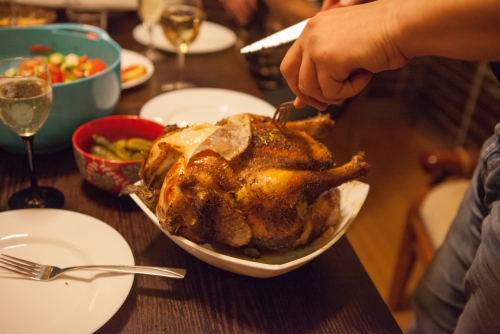 На обед сегодня готовила форель с картофелем и капустный салатик