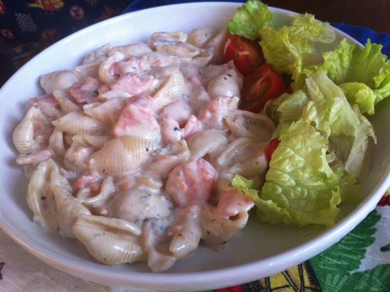 Наш поздний завтрак- спагетти. Соус: жареный на сливочном масле лук + слегка поджаренный сладкий перец + острый соус табаско + листья салата и помидорка черри.