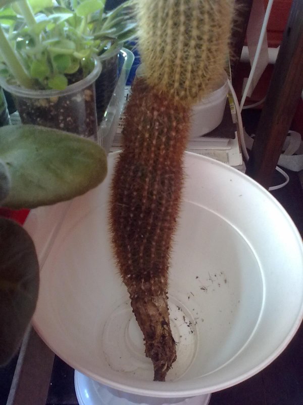кактусы столбовидные . я их вытащила из земли у них корни трухлявые прям в руках оставались и у второго есть место с мягкой гнилью и черными пятнами на корнях