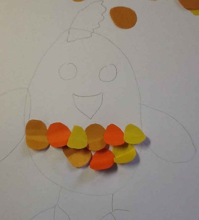 Поделка на пасхальную тему. Получился серьезный цып ;). Развиваем мелкую моторику:).