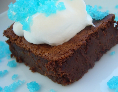Духовку нагреть до 180 градусов. Форму d=26 см смазать маслом и присыпать мукой, вылить тесто и выпекать 30 мин. Пирог покажется сыроватым через 30 мин, но этого достаточно, ему нужно дать остыть и он станет нужной консистенции. Лучше всего подавать его холодным со взбитыми сливками.