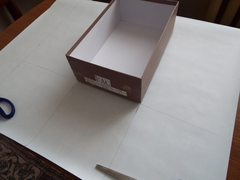 Поставить коробку на бумаге, обвести карандашом, по линейке отложить во все стороны двойную ширину бортика. Вырезать ненужные уголки.
